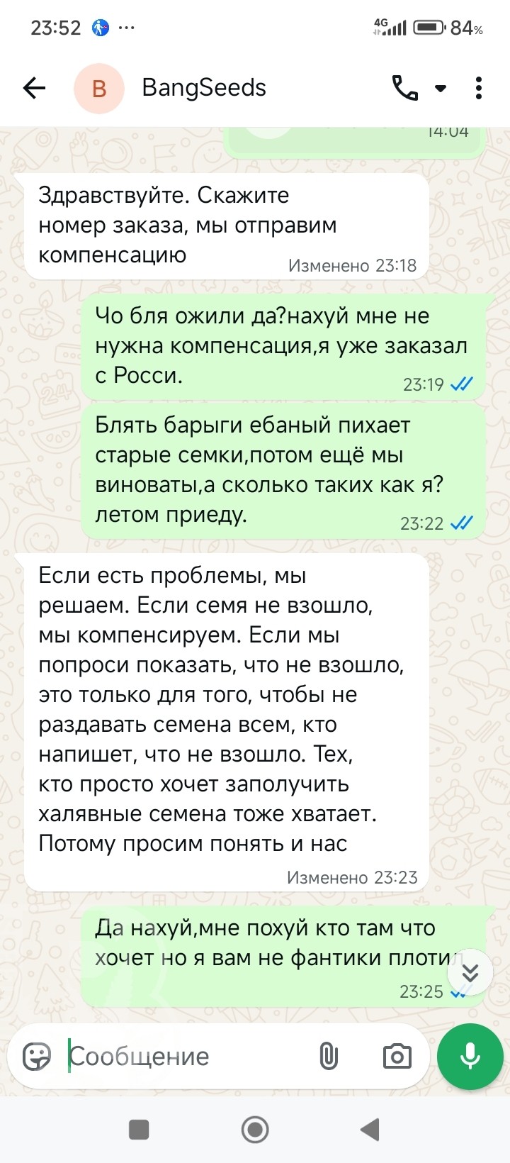 Да нахуй мне ваша компенсация нужна,?в дубло себе засуньте эти деньги и семена ваши,но я хуй слезу с вас.барыги ебаные молчали пока коменты не выстовил,на почту писал,ебаному Андре писал,на Ватсапп писал звонил вы молчали теперь о компенсации заговорили .я летом приеду к вам на каляске своей глаза в ваши барыжные прсмотреть